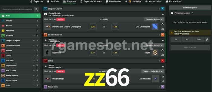 O zz66 oferece uma grande seleção de opções de apostas em e-sports com probabilidades competitivas